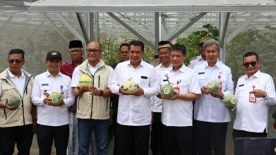Bupati Tangerang, Moch. Maesyal Rasyid, meresmikan Greenhouse dan melaksanakan panen perdana budidaya melon hasil Program Tanggung Jawab Sosial dan Lingkungan (TJSL) PT. PLN (Persero) Unit Induk Pembangunan Jawa Bagian Barat di Eduwisata Agribisnis Desa Sodong Kec. Tigaraksa, Rabu (7/1/26).