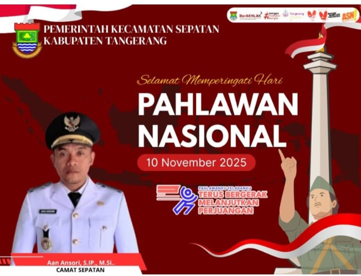 Sepatan 10 November 2025, – Camat Sepatan, Aan Anshori, S.IP, M.Si, mengucapkan selamat Hari Pahlawan 10 November 2025. Dalam peringatan ini, Aan Anshori mengajak masyarakat untuk mengenang jasa-jasa pahlawan yang telah berjuang untuk kemerdekaan Indonesia.