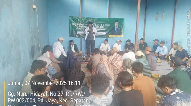 Kabupaten Tangerang, 6 November 2025 – Dewan Perwakilan Rakyat Daerah (DPRD) Dapil 3 Kabupaten Tangerang melaksanakan reses masa persidangan ke I tahun sidang 2025-2026 di rumah salah satu warga di Desa Pondok Jaya, Kecamatan Sepatan, Kabupaten Tangerang. Acara ini dihadiri oleh para tokoh masyarakat, pemuda, dan warga setempat.