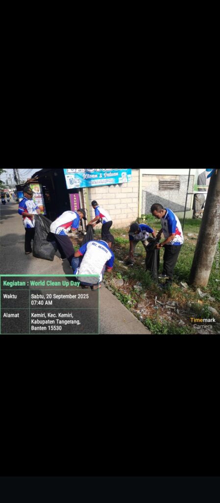 Kemiri, 20 September 2025 — Dalam rangka memperingati World Clean Up Day (WCD) 2025, Kecamatan Kemiri melaksanakan kegiatan Aksi Bersih Serentak dengan melibatkan seluruh unsur masyarakat, perangkat desa, organisasi kepemudaan, pelajar, serta elemen swadaya masyarakat.