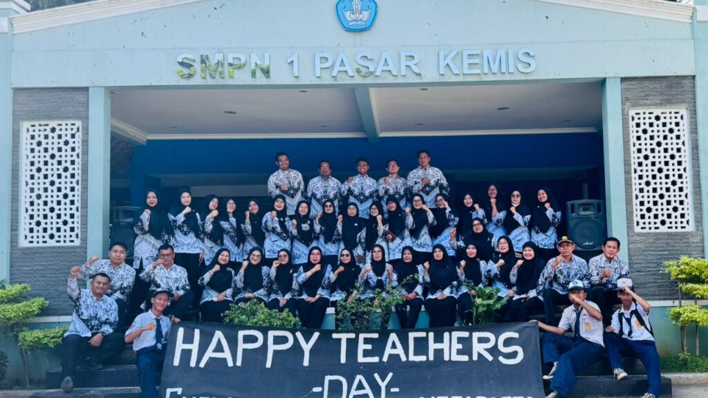 Kabupaten Tangerang 25 November 2025, – Dalam rangka memperingati Hari Guru, siswa-siswi SMPN 1 Pasar Kemis, Kabupaten Tangerang, mengadakan kreasi unik yang membuat para guru dan Kepala Sekolah, Noor Hasanah, terharu. Para siswa-siswi mengikuti kebiasaan guru dengan menggunakan pakaian sekolah dasar, SMP, dan seragam SMA.