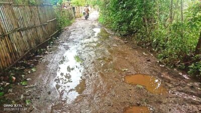 Ironisnya, jalan tersebut sudah berpuluh-puluh tahun mengalami kerusakan parah. Setiap musim hujan, kondisi jalan berubah menjadi becek, licin, dan sulit dilalui, sehingga sangat menghambat aktivitas masyarakat, baik untuk bekerja, sekolah, maupun akses ekonomi lainnya.