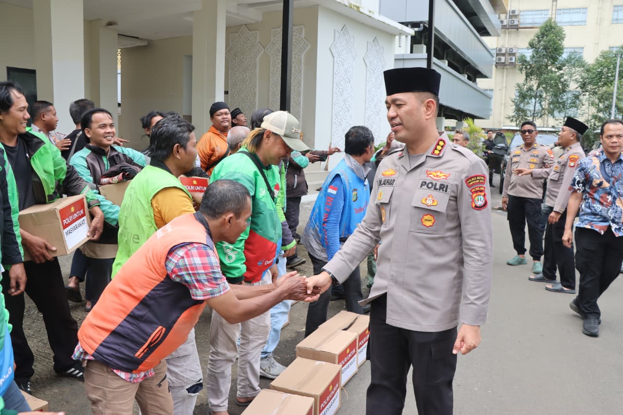 Sebanyak 50 paket sembako dibagikan kepada para pengemudi ojol. Kapolres Metro Tangerang Kota Kombes Pol. Dr. Raden Muhammad Jauhari mengatakan kegiatan ini merupakan bentuk perhatian dan kedekatan Polri dengan masyarakat, khususnya para pengemudi ojek online yang setiap hari bekerja melayani warga.