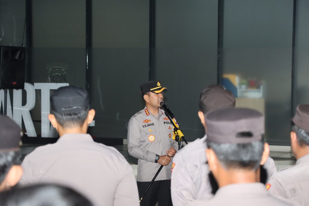 Kegiatan tersebut dipimpin langsung oleh Kapolres Metro Tangerang Kota Kombes Pol Dr. Raden Muhammad Jauhari, S.H., S.I.K., M.Si, dan diikuti oleh 100 personel gabungan dari berbagai satuan fungsi Polres Metro Tangerang Kota.