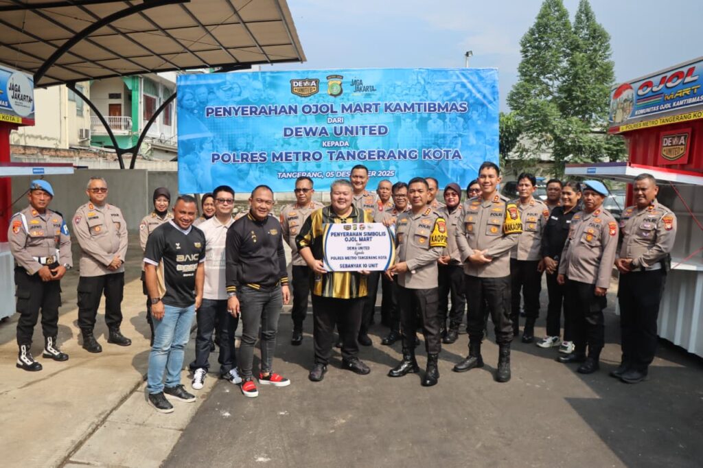 Tangerang – Polres Metro Tangerang Kota menerima secara resmi bantuan 10 unit Ojol Mart dari manajemen Dewa United. Serah terima berlangsung pada Jumat, 5 Desember 2025, bertempat di depan Gedung Parkir Polres Metro Tangerang Kota. Kegiatan dihadiri sejumlah pejabat utama Polres serta jajaran pimpinan Dewa United dan PT. Lima Sekawan Indonesia.