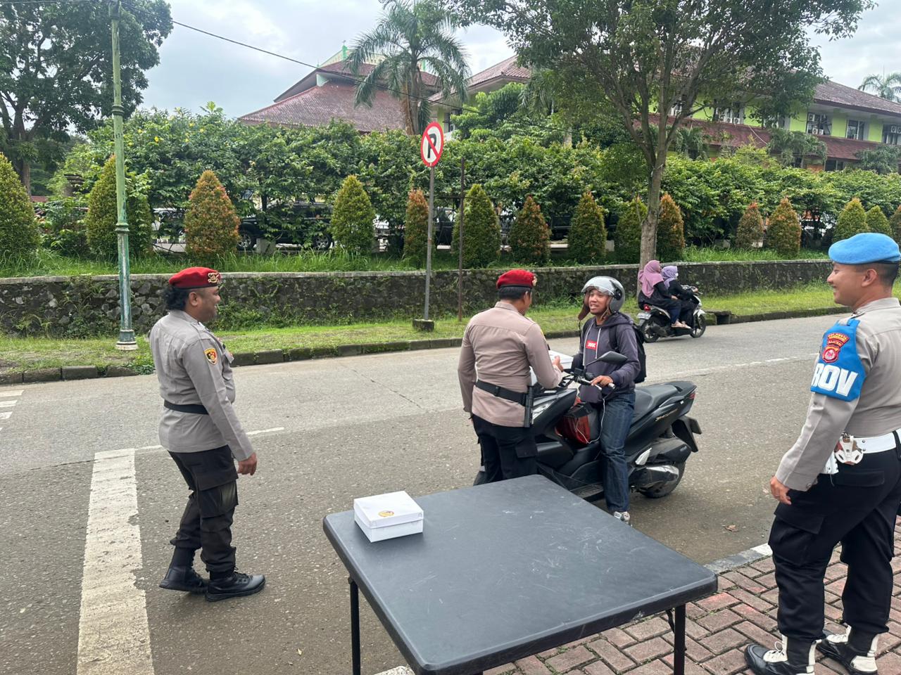 Dalam kegiatan pembagian takjil itu, personel juga menyampaikan imbauan kamtibmas kepada para pengendara. Imbauan yang disampaikan di antaranya agar tetap tertib berlalu lintas serta bersama-sama menjaga keamanan dan ketertiban selama Ramadan.