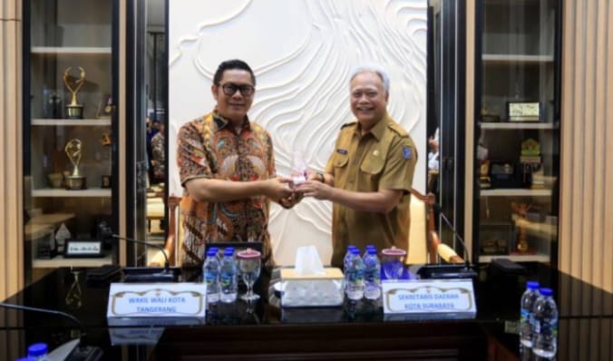 Dalam upaya memperkuat kualitas pelayanan publik, Wakil Wali Kota Tangerang, H. Maryono, bersama sejumlah kepala Organisasi Perangkat Daerah (OPD) melakukan kunjungan kerja ke Pemerintah Kota Surabaya. Rombongan disambut oleh Sekretaris Daerah Kota Surabaya, Lilik Arijanto, beserta jajaran OPD di lingkungan Pemkot Surabaya.