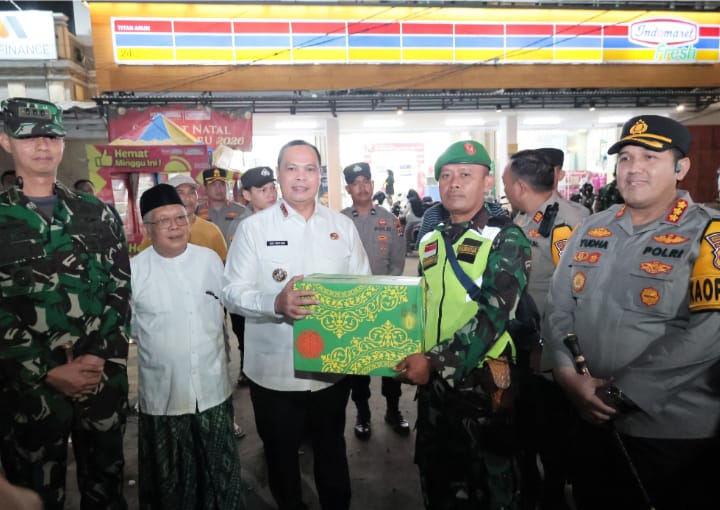 Budi Rustandi serahkan bingkisan ke petugas dan tekankan pentingnya sinergi untuk kondusivitas wilayah. “Kota Serang harus terbuka, aman, dan ramah,” ujarnya.